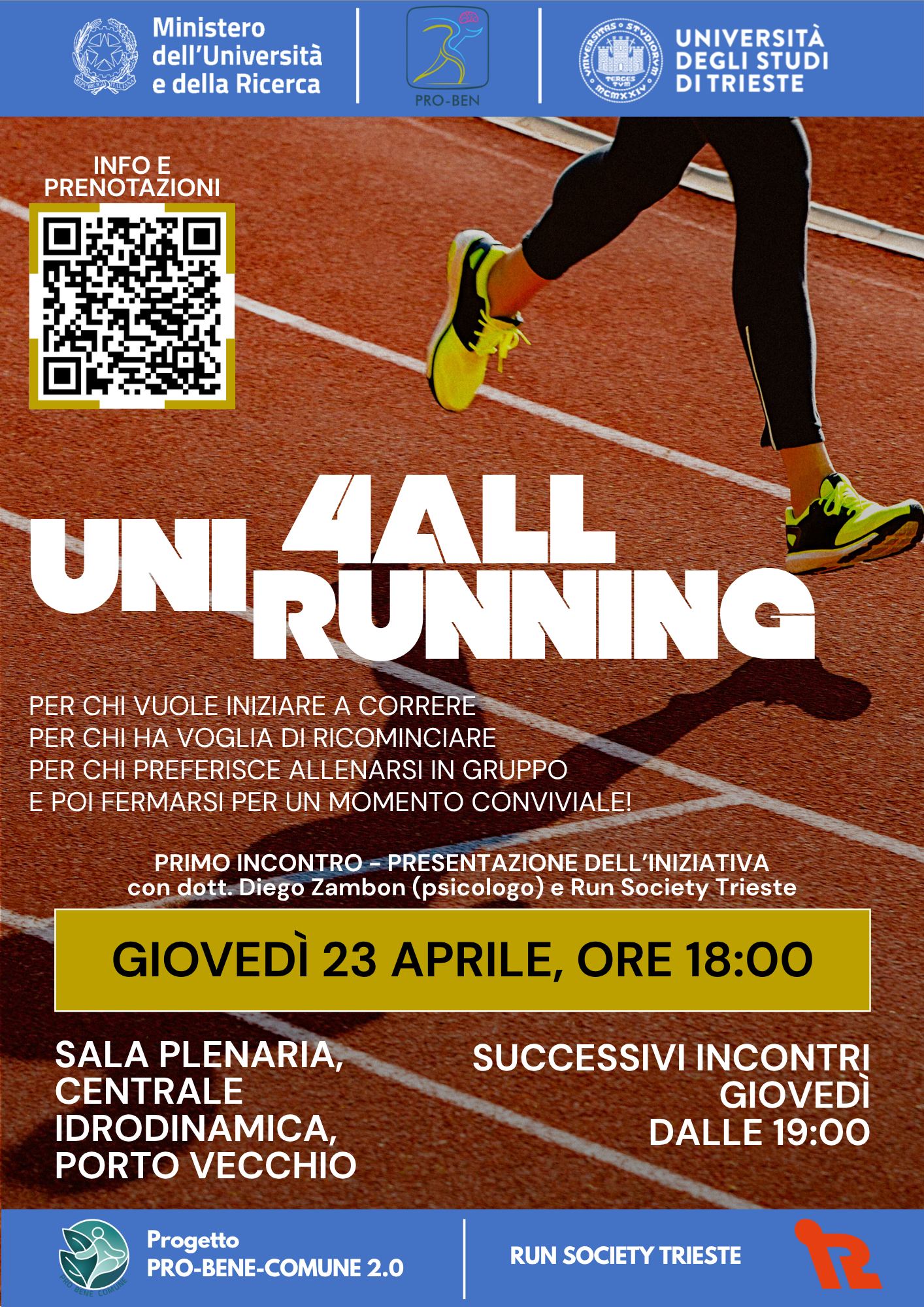 - Running Team: costituzione di un gruppo aperto formato da student* e personale dell’università, che si ritrovano per allenarsi a correre insieme, indipendentemente dal livello di partenza di ciascuno