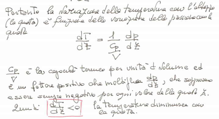 La temperatura troposferica, generalmente, diminuisce all'aumentare dell'altezza, a causa dell'espansione adiabatica dell'aria. Vedi il semplice modello del profilo verticale della temperatura atmosferica, sviluppato durante il corso.