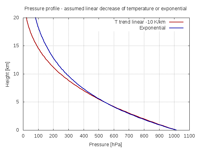 Modelli esponenziale e a gradiente con valore del gradiente pari a -10 K/km