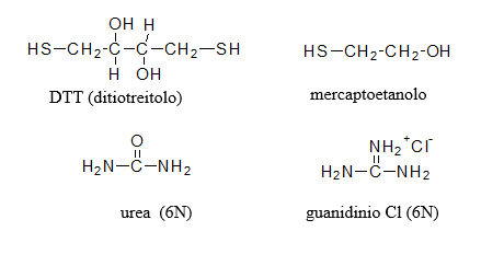 mercaptoetanolo) e agenti caotropici (urea, guanidinio cloruro)