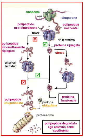 - Se questo tempo non è stato sufficiente, viene ripescata in successivi cicli di denaturazione/folding assistito. Se in seguito si ripiega correttamente si avvia a svolgere la sua funzione. Se invece c'è un difetto che impedisce il ripiegamento, sarà eventualmente eliminata dai meccanismi di controllo cellulare.