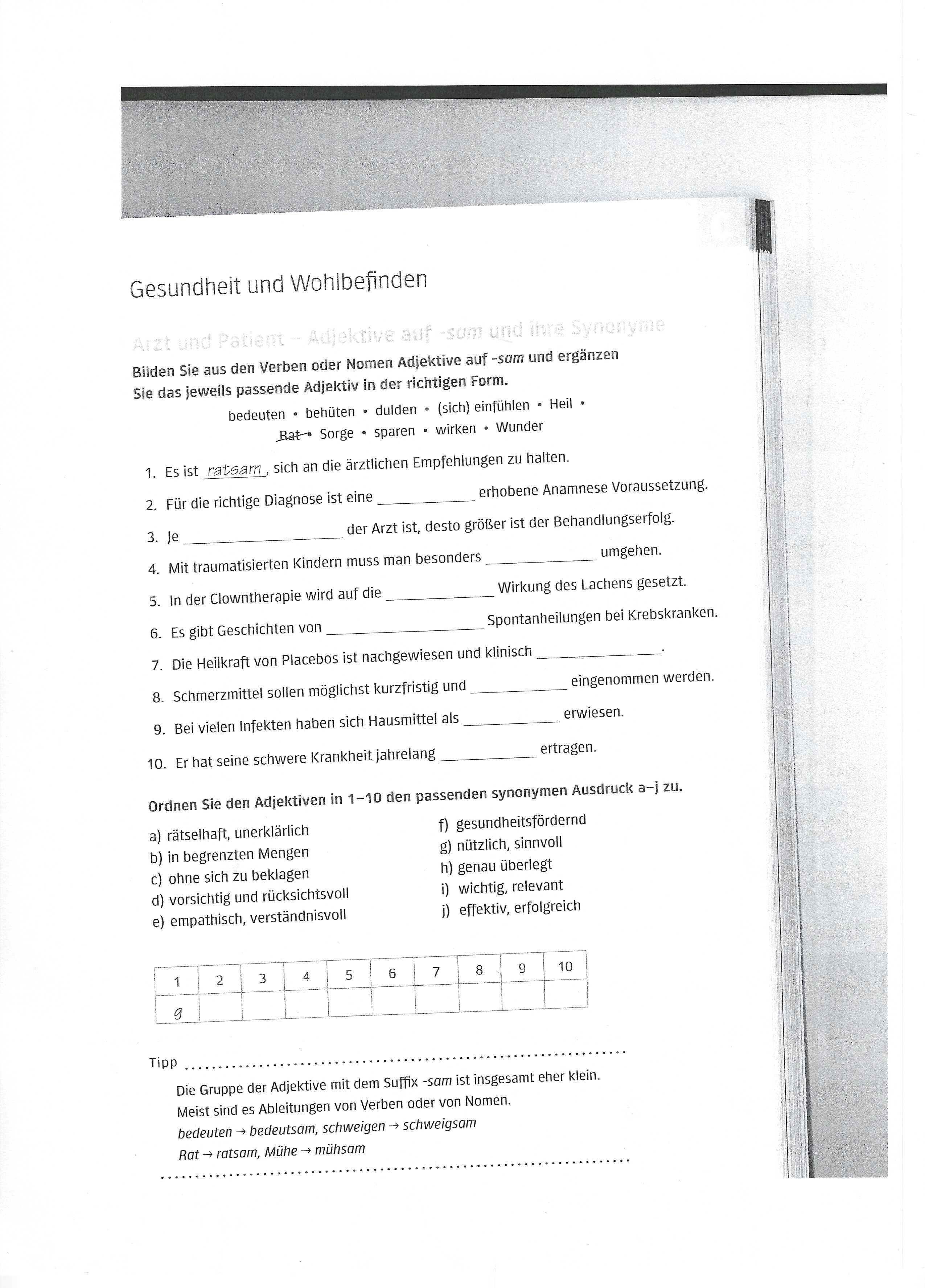 Wortschatz: Gesundheit und Wohlbefinden