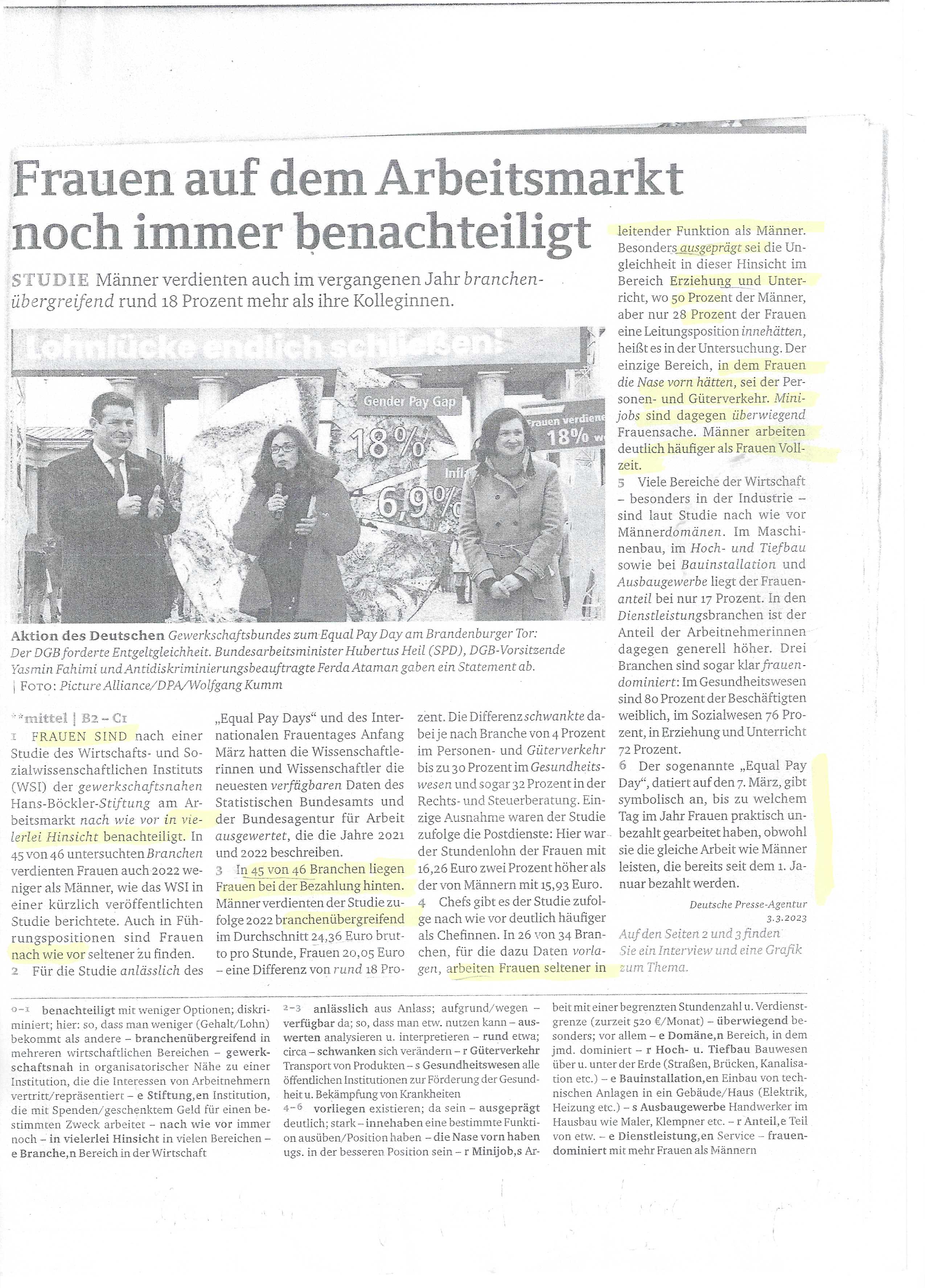 Frauen auf dem Arbeitsmarkt noch immer benachteiligt