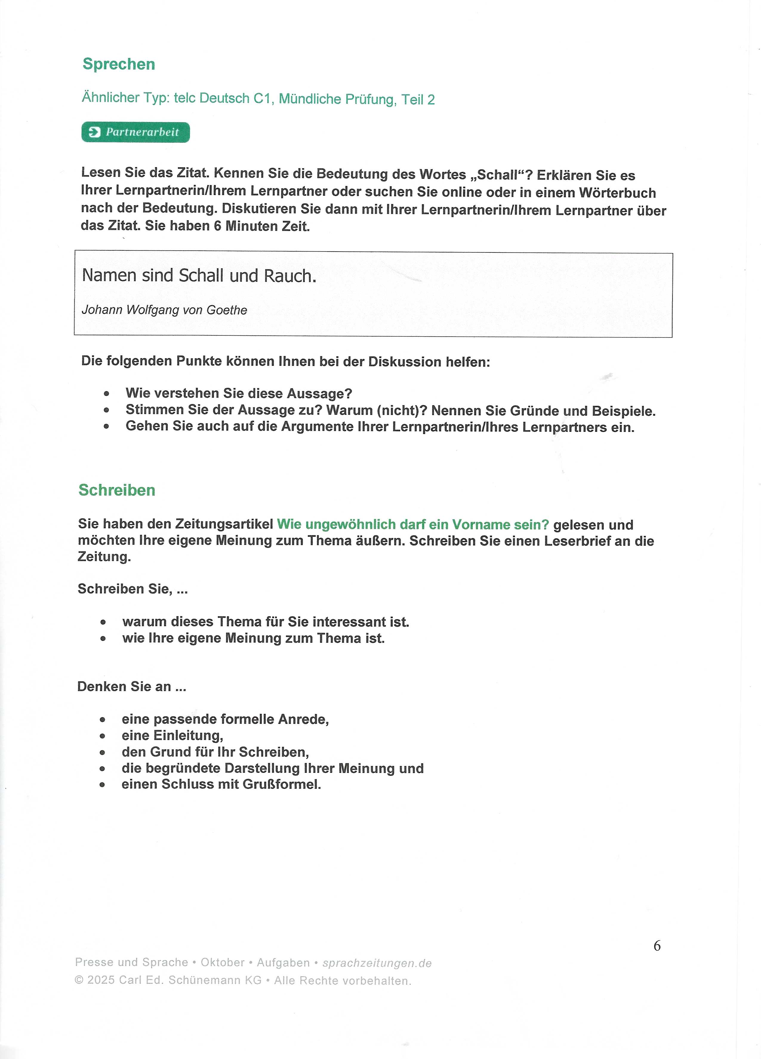 1. Sprechen und 2. Schreiben