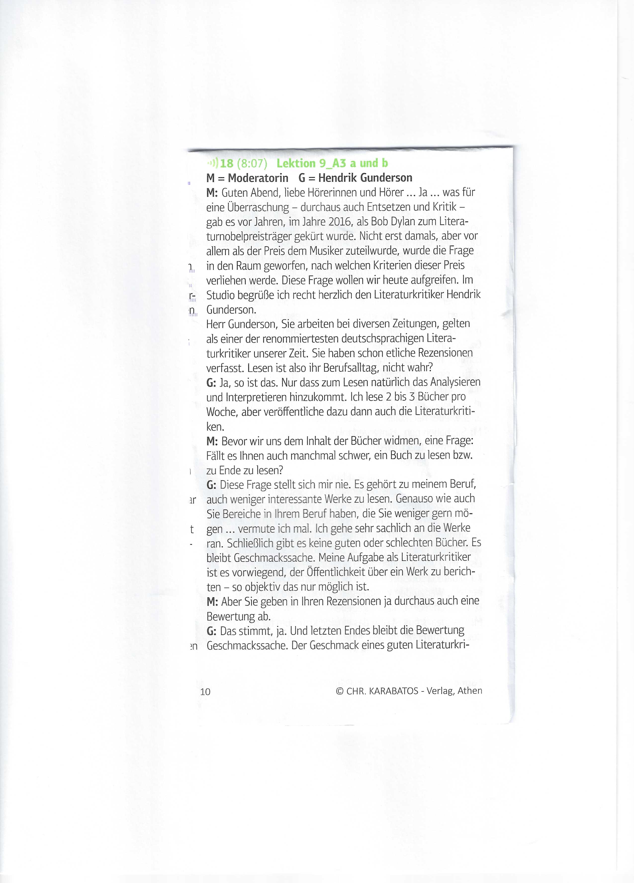 Gespräch mit einem Literaturkritiker zur Verleihung des Literaturnobelpreises - Hörverstehen